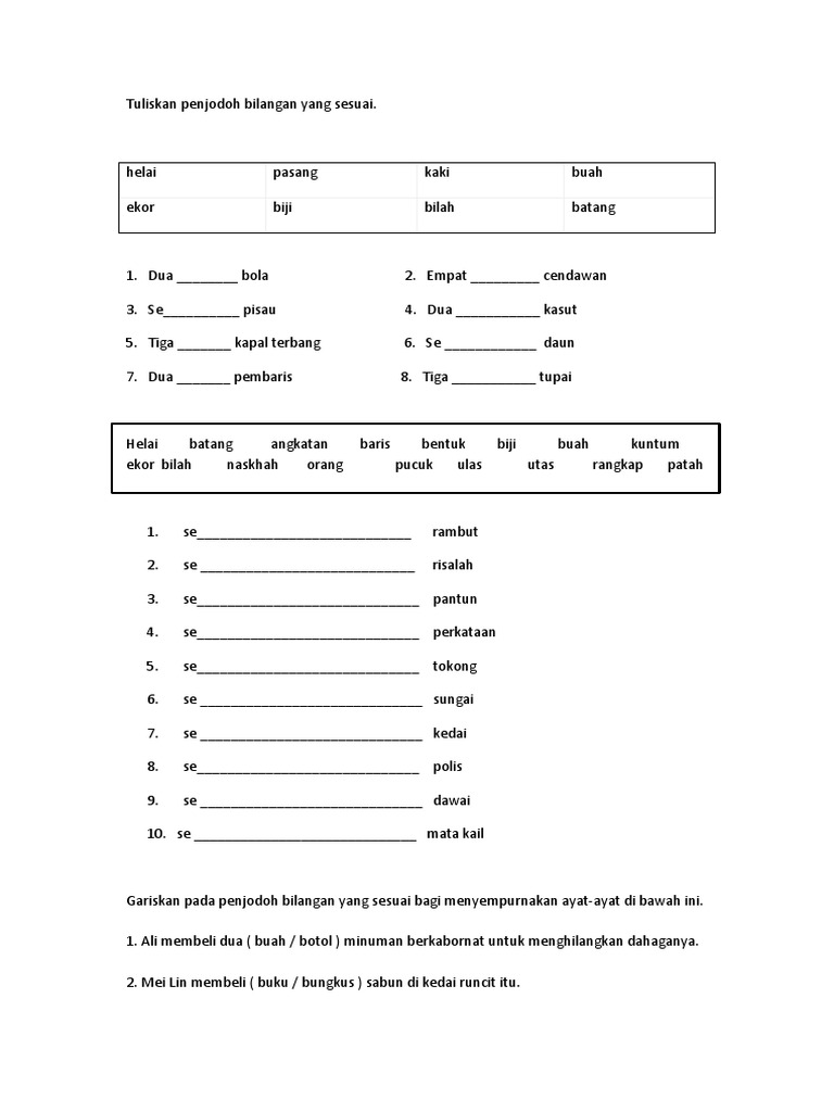 Tahun 3 Penjodoh Bilangan Padankan from az779572.vo.msecnd.net A ikat … ulas b cekak…biji c jemput…butir d rumpun…genggam. 0%0% found this document useful, mark this document as useful. Pengakap muda itu mencari beberapa _ kayu untuk mendirikan khemah. Kpt 6044 (pembelajaran berasaskan web dan teknologi)pm datodr abd latif hj gapor. Kadangkala kata bilangan disertai penjodoh bilangan seperti batang, buah, ekor, orang, dan sebagainya. Penjodoh bilangan tahun 3disediakan oleh : Penjodoh bilangan tahun 4 created using powtoon free sign up at www.powtoon.com/. Dalam bahasa cina, penjodoh bilangan digunakan bersama kata bilangan untuk menentukan kuantiti sesuatu benda, atau dengan ini/itu untuk emngeal pasti benda tertentu.