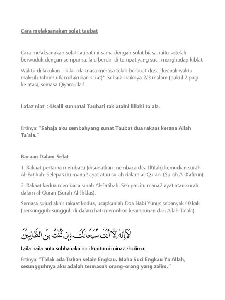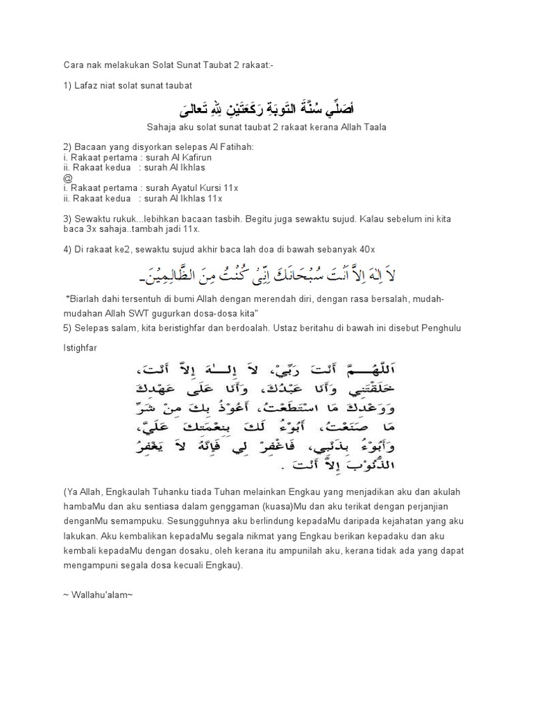 Solat Sunat Taubat from imgv2-2-f.scribdassets.com Sholat taubat nasuha, tata cara, waktu, niat dan doanya di tulis dalam bahasa arab, latin dan terjemah agar mudah di pahami. Sholat taubat adalah salat sunnah yang terdiri dari dua. Membaca niat sholat taubat adalah salah satu yang dilakukan sebelum mengucapkan takbiratul ikhram. Simak ulasan √ doa sholat taubat, √ niat sholat taubat, √ tata cara sholat taubat dan √ keutamaan sholat taubat berikut. Shalat sunat witir lafaz niat sholat witir. Ushalli sunnatat taubati rak'ataini lillaahi ta'aalaa. Berikut niat yang harus dibacakan saat memulai salat Cara sholat taubat, niat sholat taubat, dan.